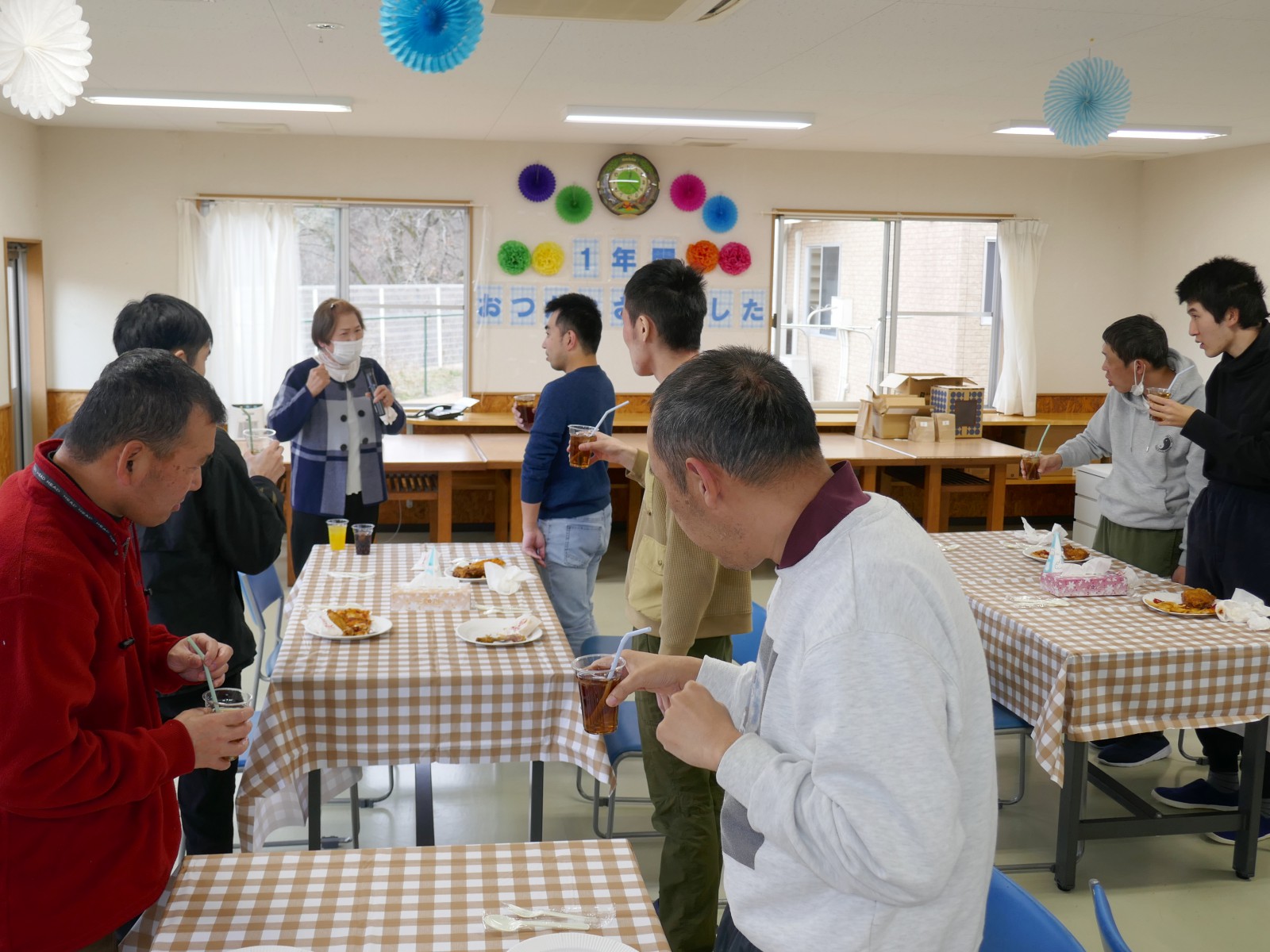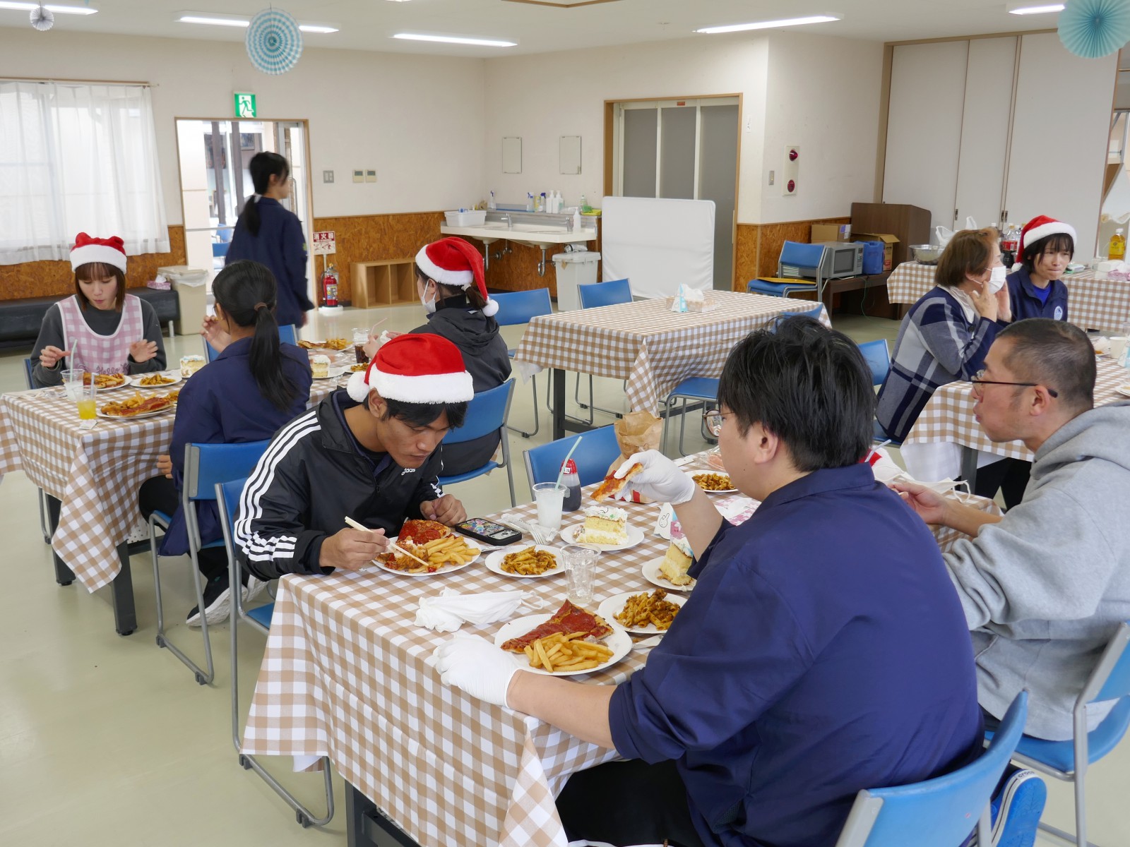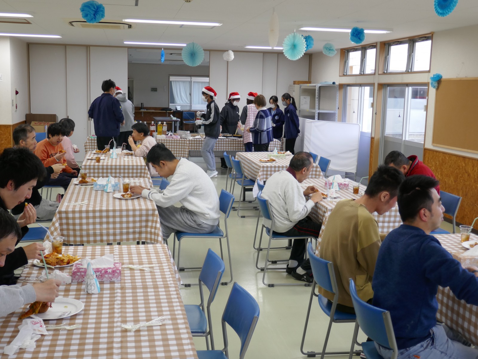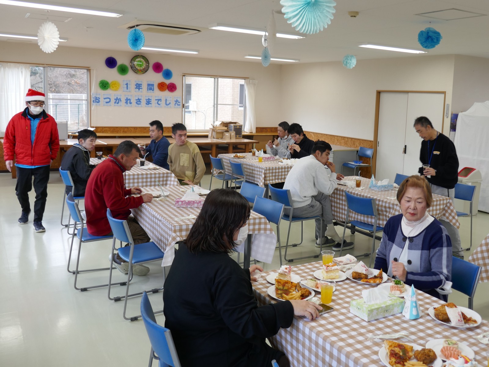 利用者忘年会(虹の里/農作業・創作活動班)を開催しました! 2025/12/23 今日は1年間農作業や創作活動にがんばって取り組んだ利用者の皆さんを囲んで忘年会を開催しました。 週末からカゼひきさんが増えてしまい、会場での参加者は少なかったのですが、皆さんのリクエストにお応えしたメニューをご用意させていただきました!