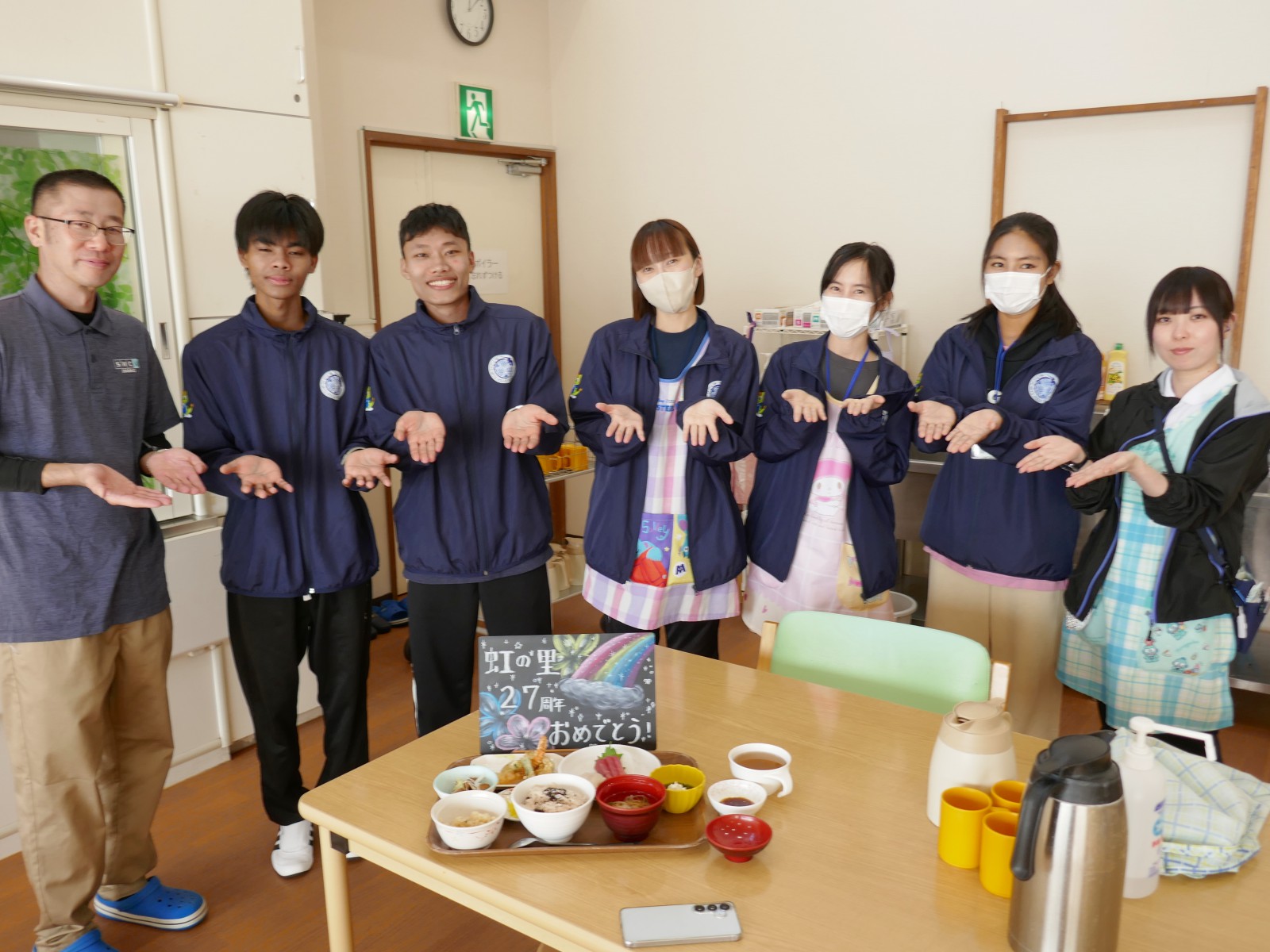祝・虹の里27回目の誕生日(皆様に感謝!) 2025/12/01 本日、障害者支援施設虹の里は27回目の誕生日を迎えることができました。これまで虹の里の運営を支えてくださった地域の皆様はじめ全ての関係者様に深く感謝申し上げます。 稲敷郡内唯一の障害者支援施設として、虹の里にしかできない役割をしっかり果たし、地域に根ざす社会福祉法人としての使命も忘れることなく地域貢献を果たしていく所存です。 28年目の虹の里もよろしくお願いいたします。 理事長 中村栄子 虹の里施設長 八木澤健仁 他職員一同