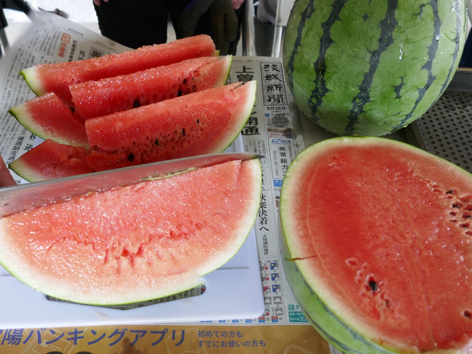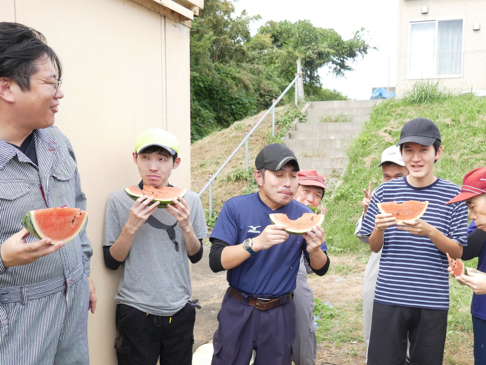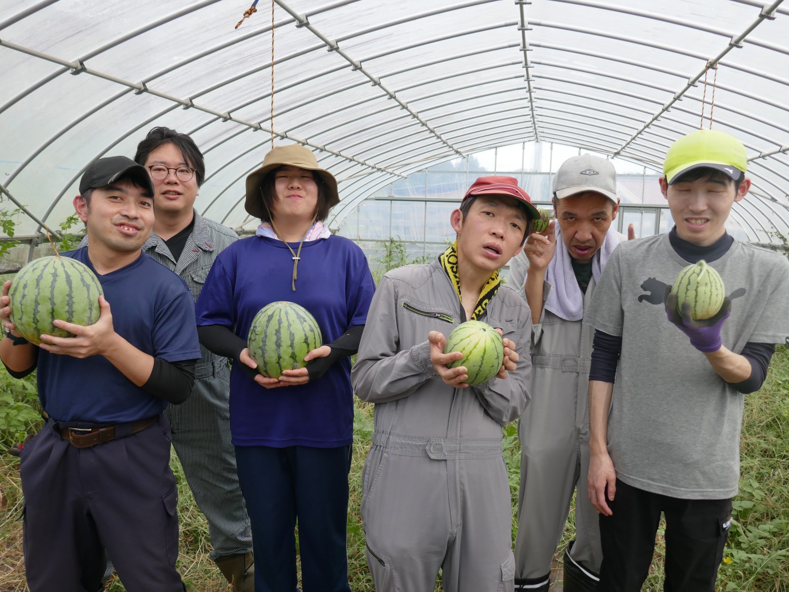 日中活動の様子(スイカの収穫ほか) 2025/09/29 本日午前の日中活動の様子です(虹の里)。 スイカハウスの片付け作業をしていたら、隠れて実っていたスイカを発見・収穫しました。味は期待していませんでしたが、割ってみたら香ばしいスイカの香り。味も市販のスイカと何ら遜色なし。9月下旬のスイカもいいものです。 先週提供させていただいた虹の里ランチも掲載しました。